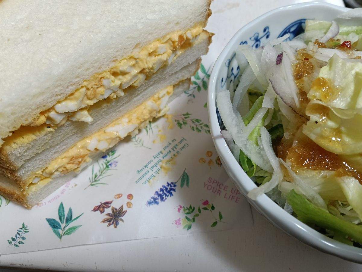 朝 小松菜胡麻和え ゆで玉子 お魚フライ アンパン