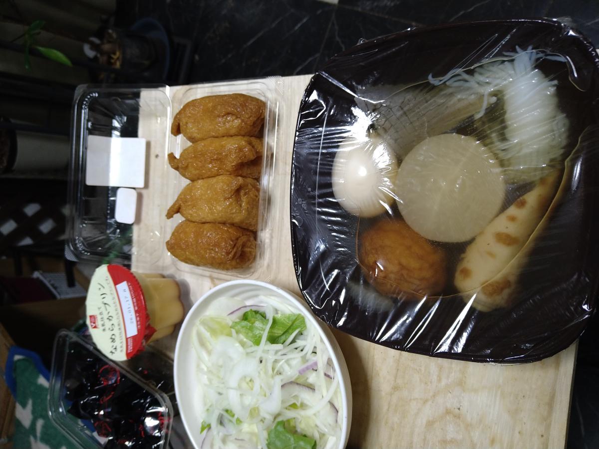 買い物に行っておでんを見つけたのでおでんとお稲荷さんで行こうと思います パウチ交換 を今日 交換しました