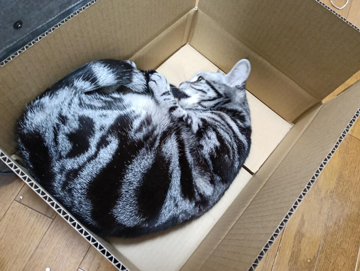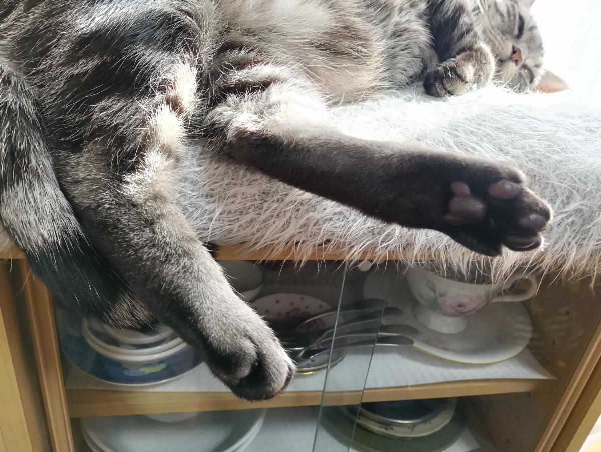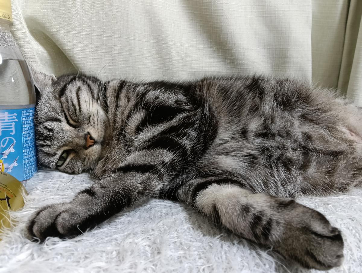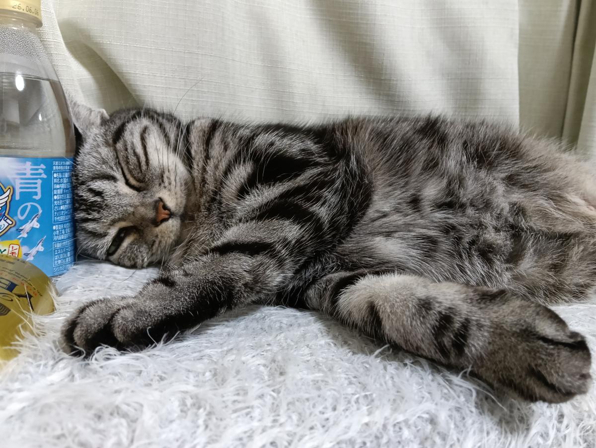 ちゅーるんを食べてトイレして、走り回ってからぷーぷーイビキをかいて寝てる