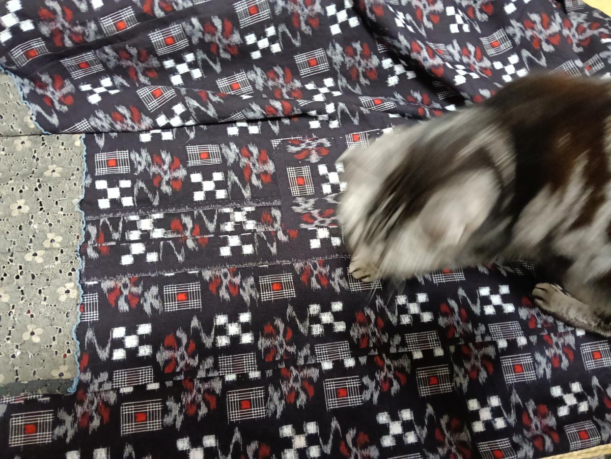 着物を畳んでいるとやって来る