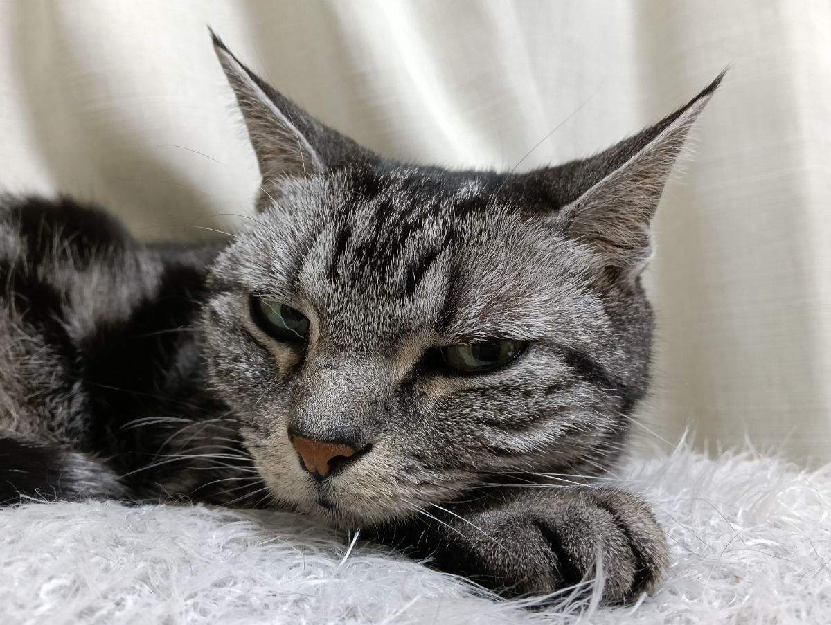 柴クッションに乗っかってねる猫(ΦωΦ)